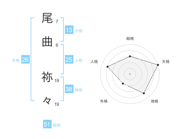 尾曲 祢々さんの地格は38画の4点!