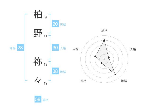 柏野 祢々さんの天格は20画の1点!