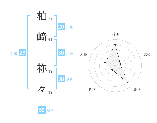 柏﨑 祢々さんの総格は58画の4点!