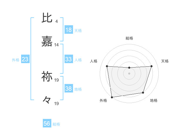 比嘉 祢々さんの総格は56画の1点!
