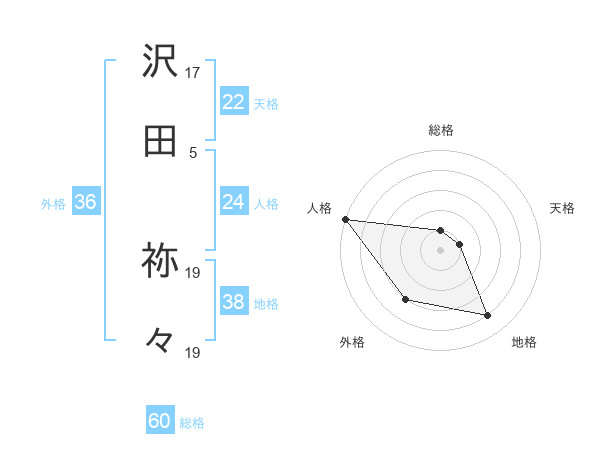 沢田 祢々さんの総格は60画の1点!