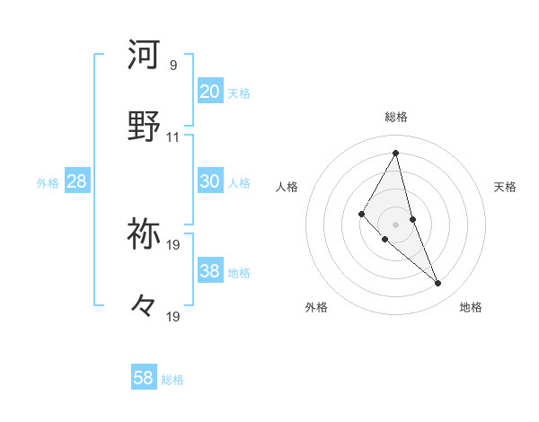 河野 祢々さんの総格は58画の4点!