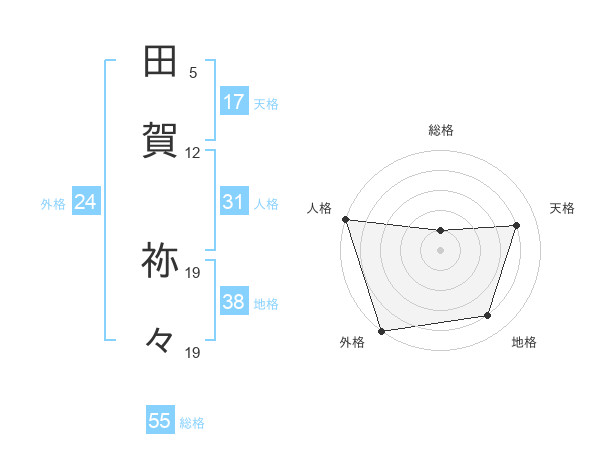 田賀 祢々さんの外格は24画の5点!