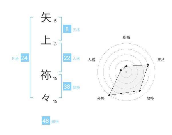 矢上 祢々さんの天格は8画の4点!