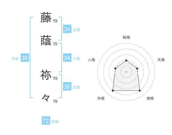 藤蔭 祢々さんの総格は72画の2点!