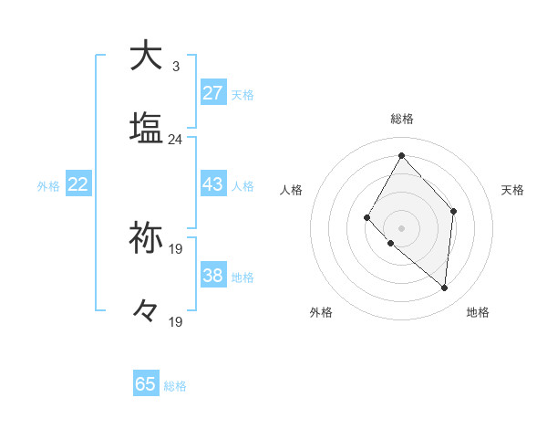 大塩 祢々さんの総格は65画の4点!