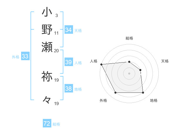 小野瀬 祢々さんを姓名の画数から五運を鑑定