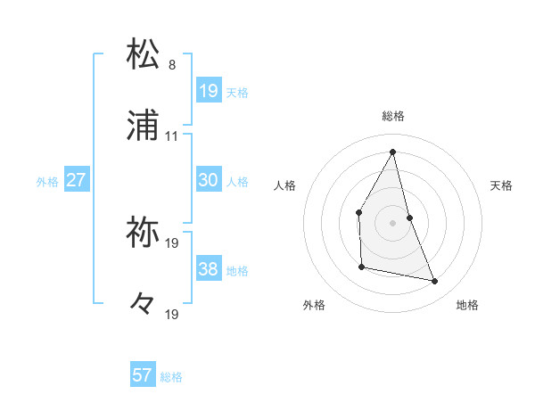 松浦 祢々さんを姓名の画数から五運を鑑定