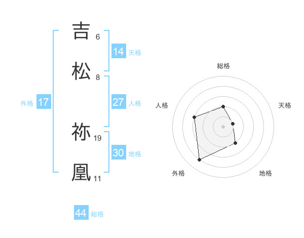 吉松 祢凰さんの総格は44画の2点!
