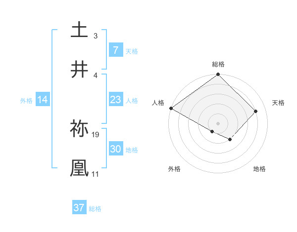 土井 祢凰さんを姓名の画数から五運を鑑定