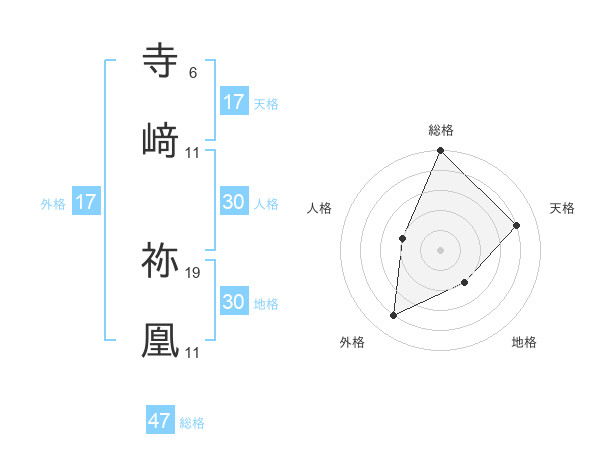 寺﨑 祢凰さんの総格は47画の5点!