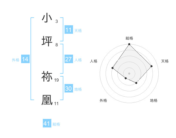 小坪 祢凰さんの総格は41画の5点!