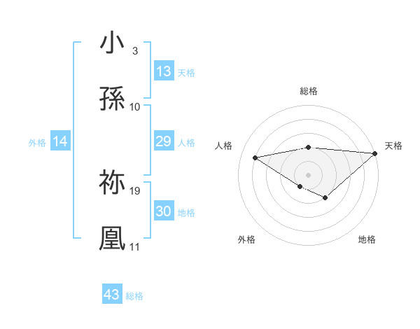 小孫 祢凰さんの総格は43画の2点!