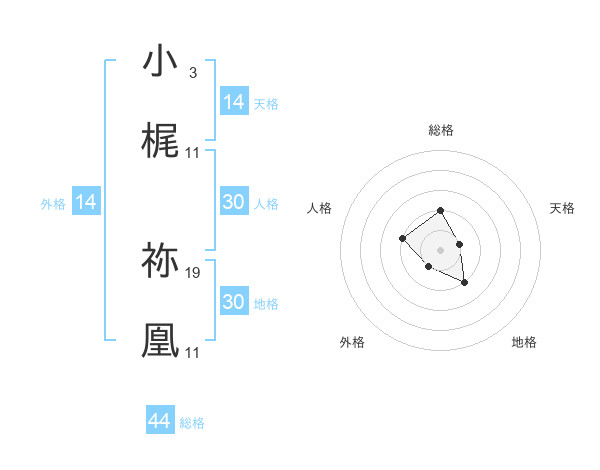 小梶 祢凰さんの外格は14画の1点!
