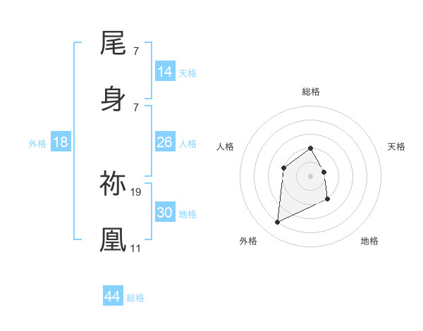 尾身 祢凰さんの天格は14画の1点!