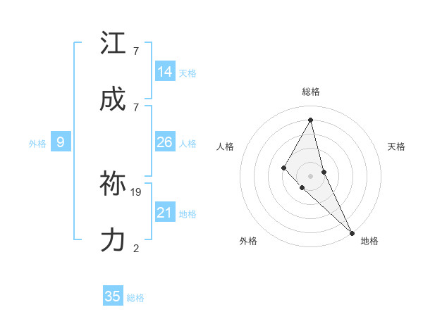 江成 祢力さんの総格は35画の4点!