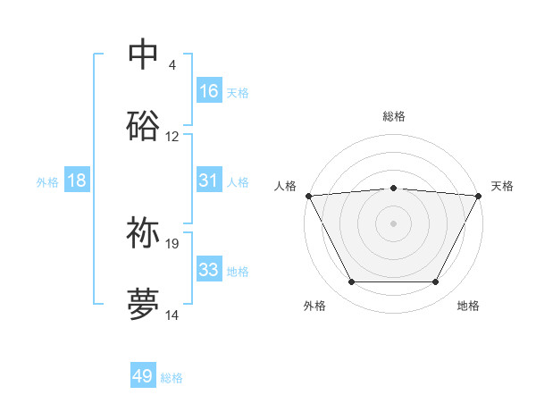 中硲 祢夢さんの総格は49画の2点!