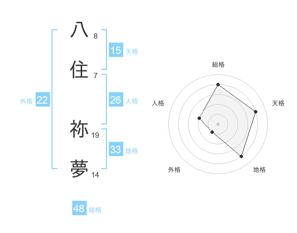 八住 祢夢さんの総格は48画の4点!