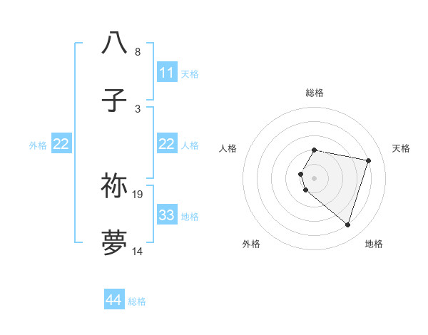 八子 祢夢さんの外格は22画の1点!
