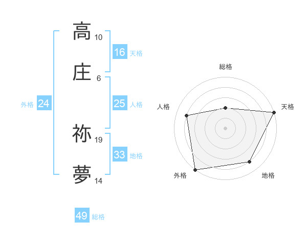高庄 祢夢さんの外格は24画の5点!