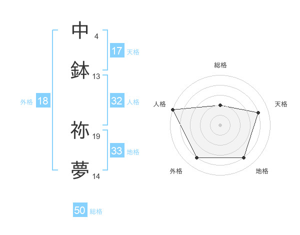 中鉢 祢夢さんの総格は50画の2点!