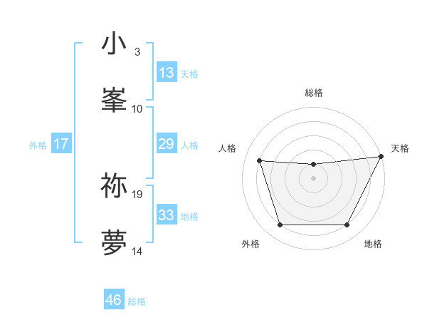 小峯 祢夢さんを姓名の画数から五運を鑑定