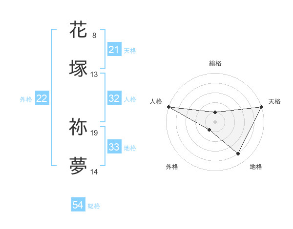 花塚 祢夢さんの外格は22画の1点!