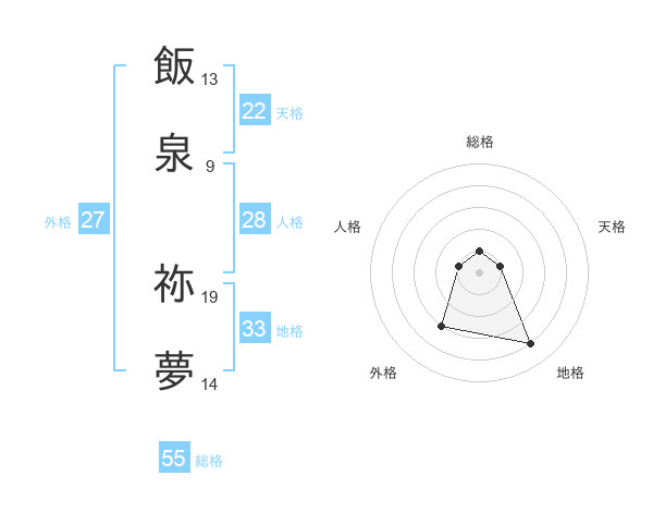 飯泉 祢夢さんを姓名の画数から五運を鑑定