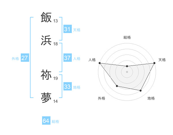 飯浜 祢夢さんの天格は31画の5点!