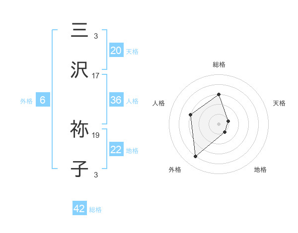 三沢 祢子さんを姓名の画数から五運を鑑定