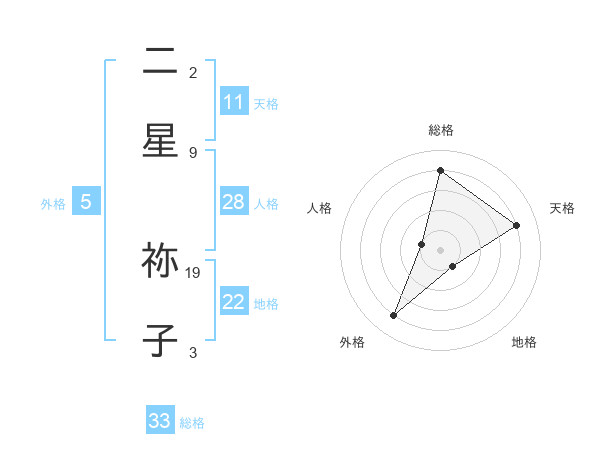 二星 祢子さんの総格は33画の4点!