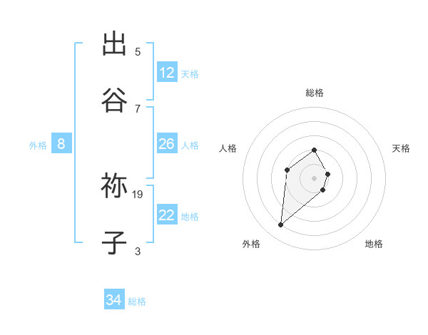 出谷 祢子さんを姓名の画数から五運を鑑定