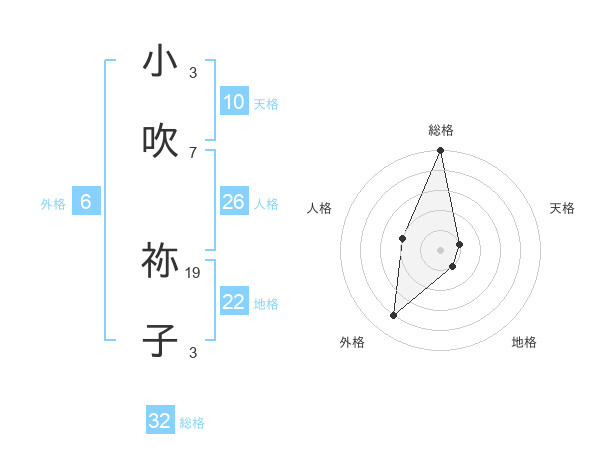 小吹 祢子さんを姓名の画数から五運を鑑定