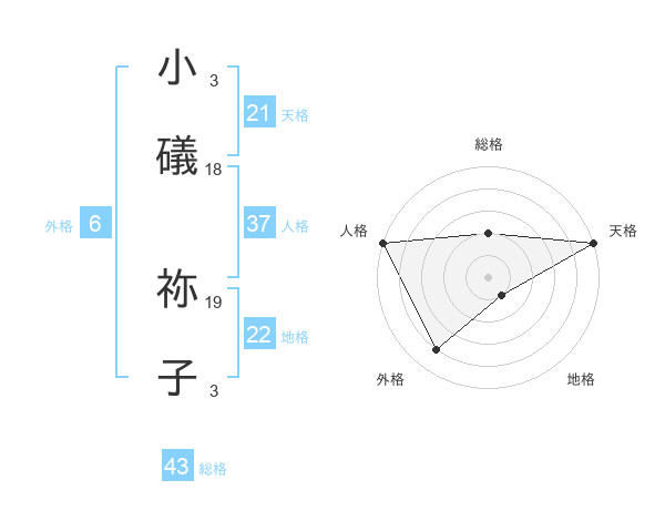 小礒 祢子さんの天格は21画の5点!