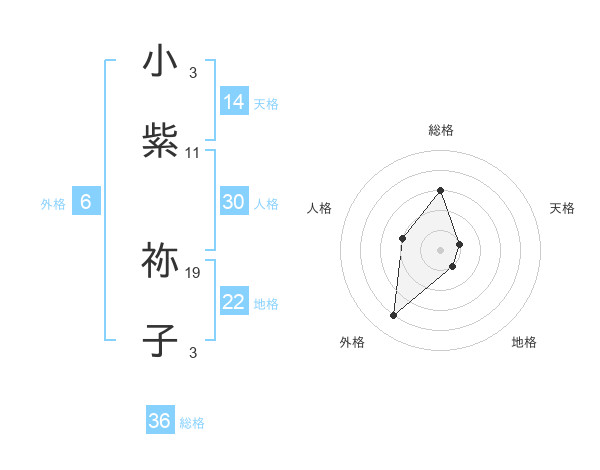 小紫 祢子さんの総格は36画の3点!