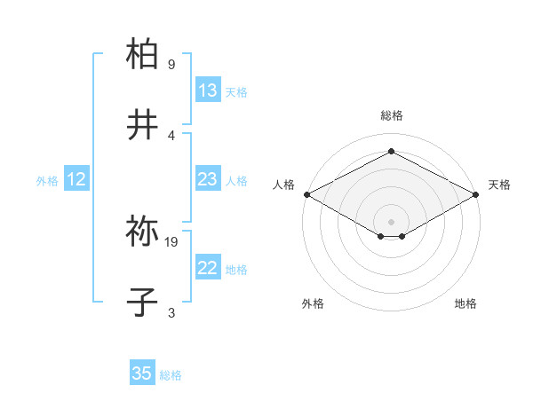 柏井 祢子さんを姓名の画数から五運を鑑定