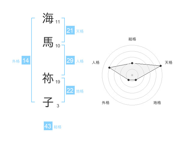海馬 祢子さんの天格は21画の5点!