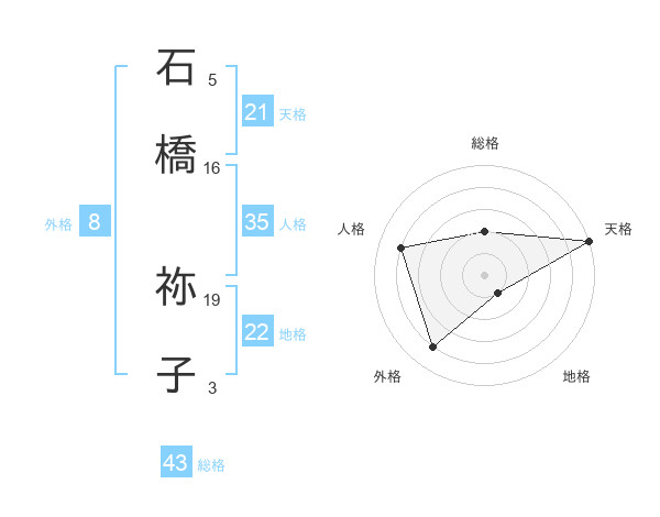 石橋 祢子さんの天格は21画の5点!