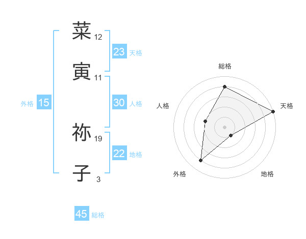 菜寅 祢子さんの総格は45画の4点!