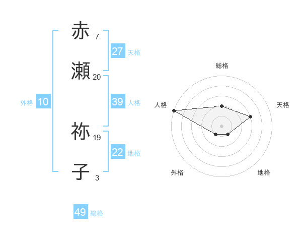 赤瀬 祢子さんを姓名の画数から五運を鑑定