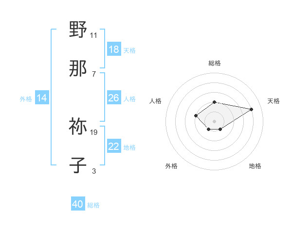 野那 祢子さんの天格は18画の4点!