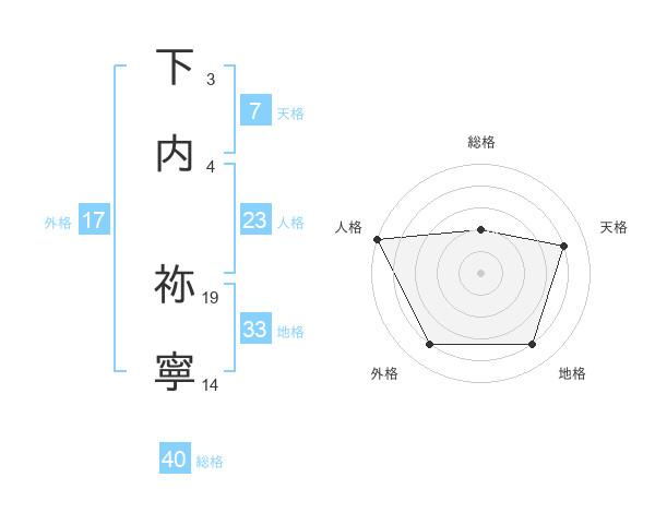 下内 祢寧さんの外格は17画の4点!
