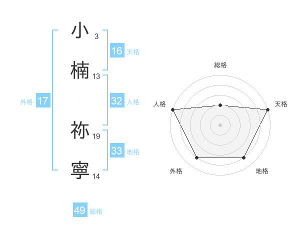 小楠 祢寧さんを姓名の画数から五運を鑑定