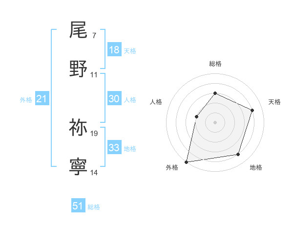 尾野 祢寧さんの総格は51画の3点!