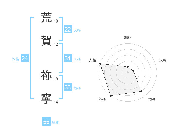 荒賀 祢寧さんの天格は22画の1点!