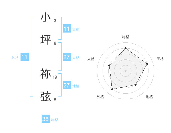 小坪 祢弦さんの総格は38画の4点!