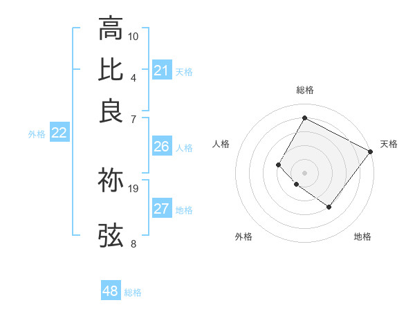 高比良 祢弦さんを姓名の画数から五運を鑑定