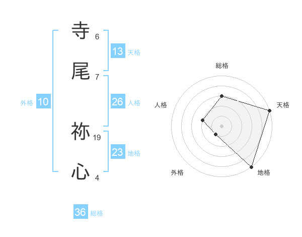 寺尾 祢心さんを姓名の画数から五運を鑑定