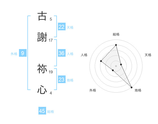 古謝 祢心さんの総格は45画の4点!
