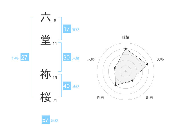 六堂 祢桜さんの総格は57画の4点!